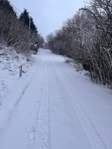 Ein perfekter Moment, um Schneeketten zu testen. Denn ohne die kommst du hier schlicht nicht weg. Unsere Ferienhausnachbarn sind zwar auf Abruf – falls ich mich doch festfahre und der Traktor aus dem Dorf kommen muss 😅 – aber Schneeketten, wer hätte es gedacht, sind eine ziemlich sinnvolle Erfindung.